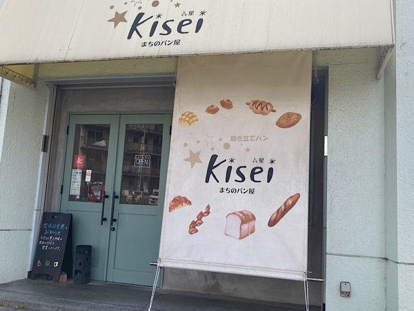 川西能勢口駅から約8分の場所にあるKiseiさん。大きな店頭幕とくすみカラーの扉がとても可愛くてずっと気になっていたパン屋さんです。