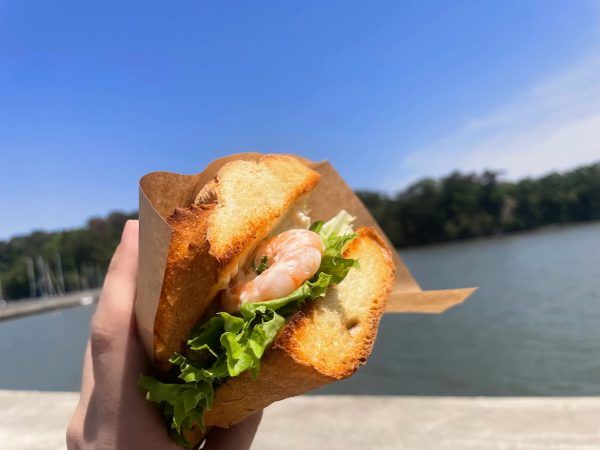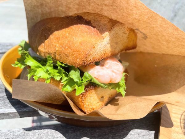 大きいエビがプリプリで、焼きたてのバゲットとマッチしておいしい~! そこにソースが相まって、最高。 とっても食べごたえのあるおいしいサンドイッチでした!
