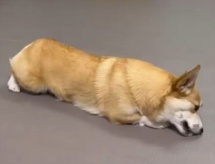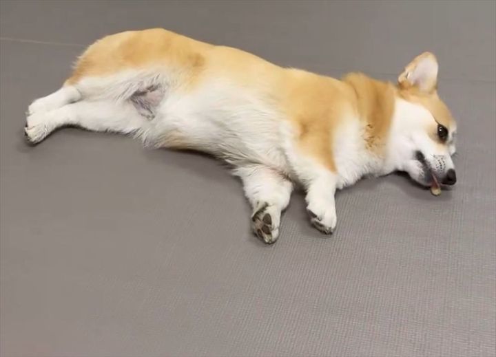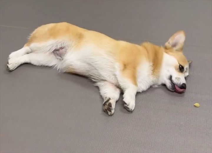 寝転がったままおやつを食べようと目論んだコーギー。 その姿が話題となっています。