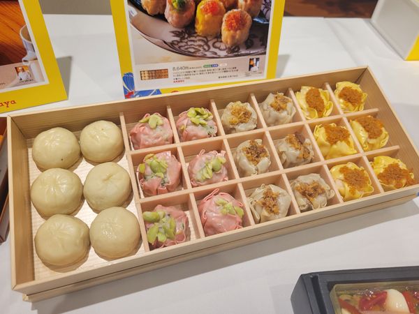 ヘイフンテラス特製XO醤入り肉焼売、海老と筍入り蒸し焼売、イカと紫蘇 干し貝柱入り焼売、豚肉と天津冬菜 キャベツの饅頭とさまざまな味が楽しめます。