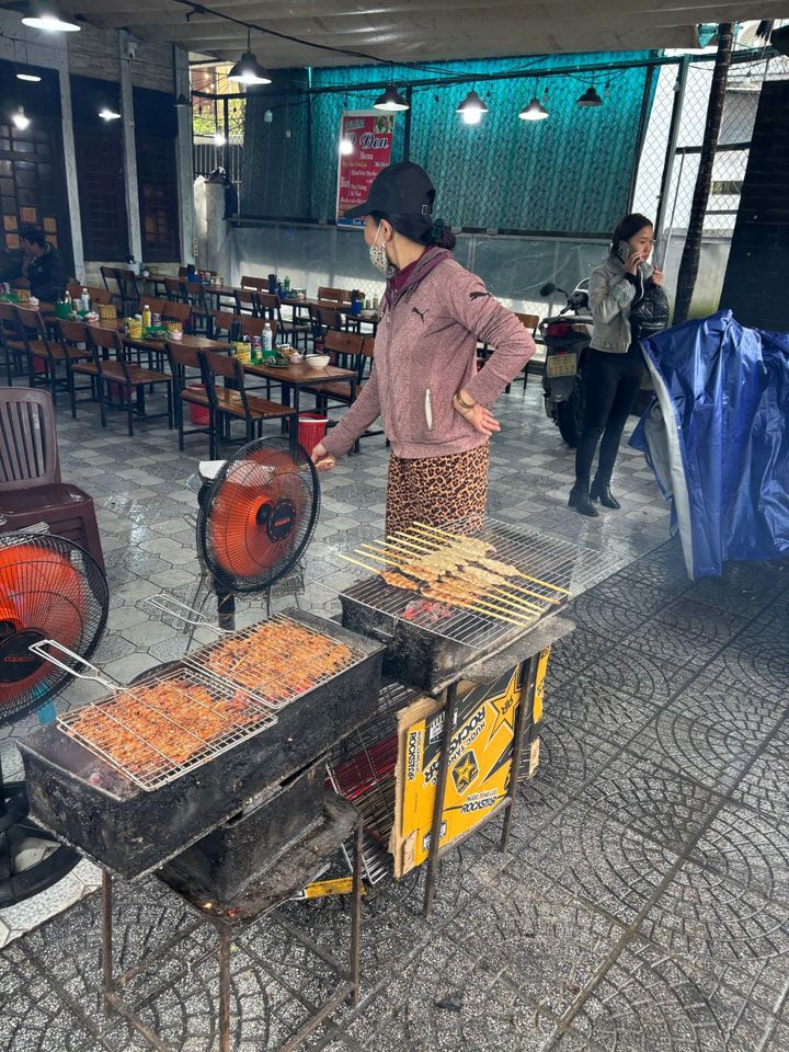 炭火で香ばしく焼いたベトナム版・豚つくね。日本のつくねに比べて弾力があり、これまたビールのお供に最高です♪ レモングラスの茎に肉だねを巻いている店も多く、さわやかな香りを一緒に楽しむことができます。たいていライスペーパーがセットで、ネムルイを巻いてたべるのが現地流。このライスペーパーは水にぬらさず使えて便利なので、お土産にもおすすめ。市場で購入できます。