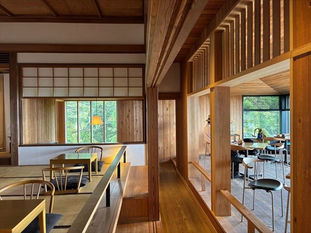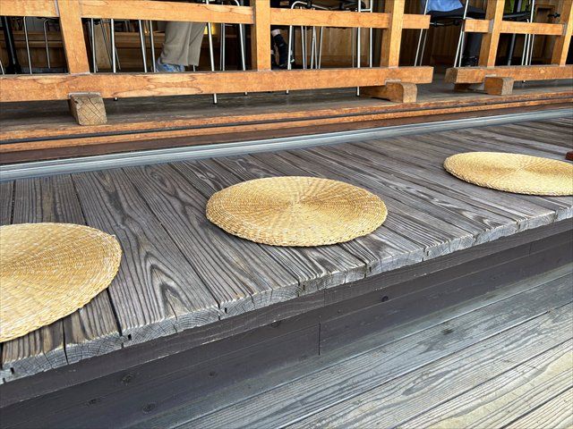 テラス席の後ろには、昔ながらの日本家屋の縁側席もあります。開放的な景色を楽しみながら、縁側でのんびりとくつろぐのもいいですね!