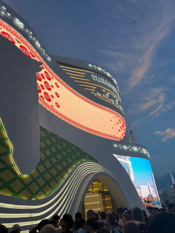 出典:MORE夕暮れに光り輝くトルクメニスタン館🇹🇲