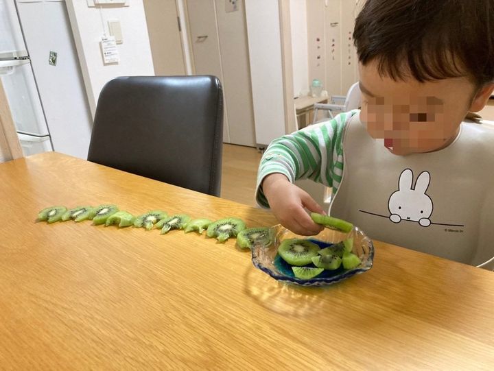 3. ずらっと並んだ“食べかけキウイ”→2歳の謎行動に考察リプ「量産して見せてる?」「有名絵本のマネ?」