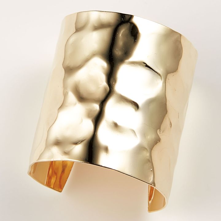 ボワ美さんの膨らみやすい毛流れと太めの毛束を、スッキリと見せてくれる。ゴールドヘアカフ¥1,100(OSEWAYA/お世話や)