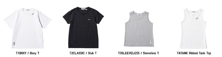 ウィメンズは、上質なコットン素材を使用した、ゆとりあるシルエットが特徴の「T1BOXY」、軽く柔らかなコットンスラブ素材で、フィット感のある「T2CLASSIC」、肌ざわりのよいコットン素材のノースリーブT「T3SLEEVELESS」、リブ編みコットン素材で、1枚でもレイヤードでも様になる「T4TANK」の4種がラインナップ。