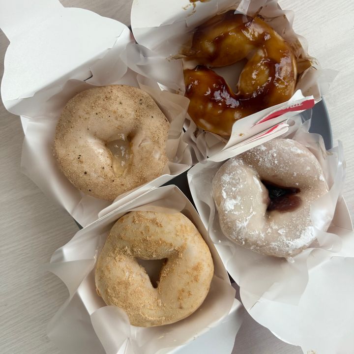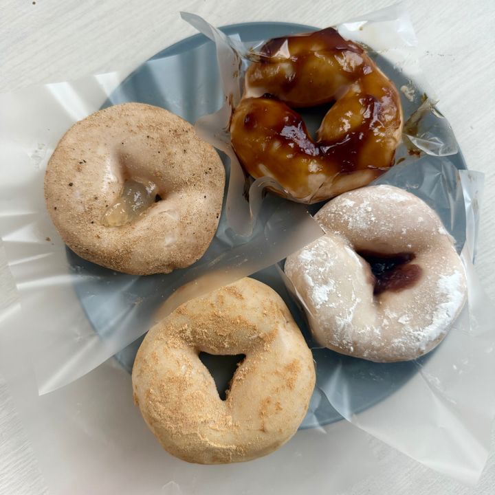 もっちゅりとした食感を、しっかりと感じられます😌上に振りかけられたきなこシュガーが、甘さ控えめで香ばしく、もちもち生地との相性抜群です!!