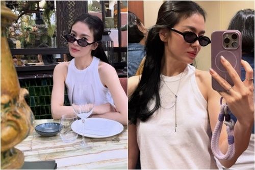 最近、ソン・ヘギョは自身のSNSを通じて近況を収めた写真を投稿した。写真の中の彼女は、黒のスラックスに白いノースリーブトップスを合わせたシンプルかつ洗練されたスタイルで、リラックスした雰囲気を醸し出している。さらに、サングラスを少し下げて見せた愛らしい微笑みは、彼女特有の清純な魅力を際立たせた。