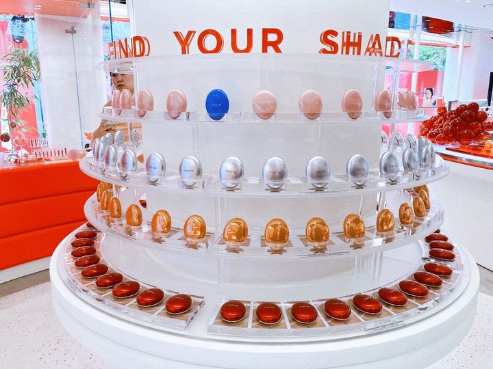 そして店内に入ると目に飛び込んでくる白を基調とした広々としたモダンで清潔感のある空間と30色展開のクッションファンデたち!