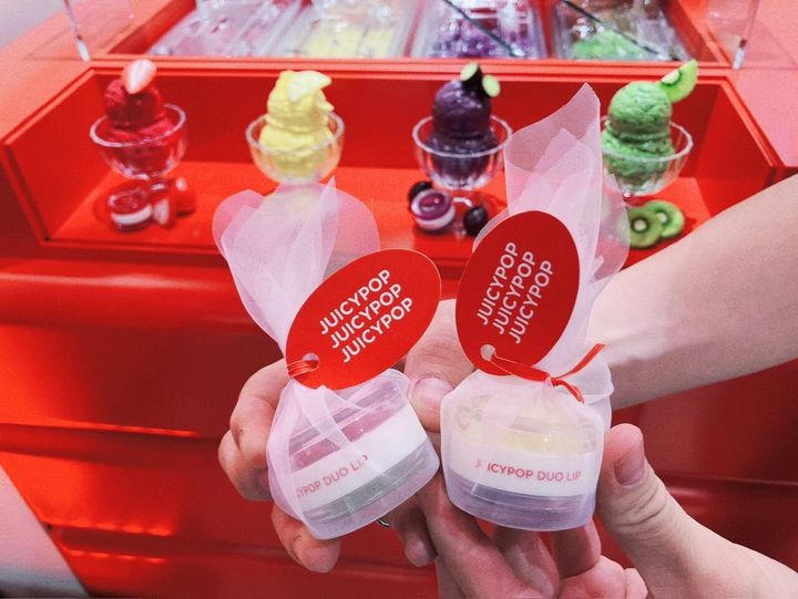 TIRTIR購入品をハッシュタグをつけてSNSに投稿すると、リップマスクとスクラブを組み合わせて自分だけのリップケアアイテムが完成。アイスクリームスタンドみたいで、このコーナーもとってもキュート。本当にアイスを作るように容器につめてくれます。