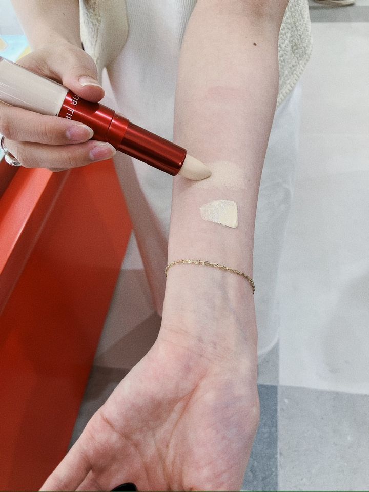 スティック部分は口紅のような形。ピンポイントでシミを消したり、眉毛の下に入れて陰影をつけたりシェーディングとして使ったり幅広く使えそう。
