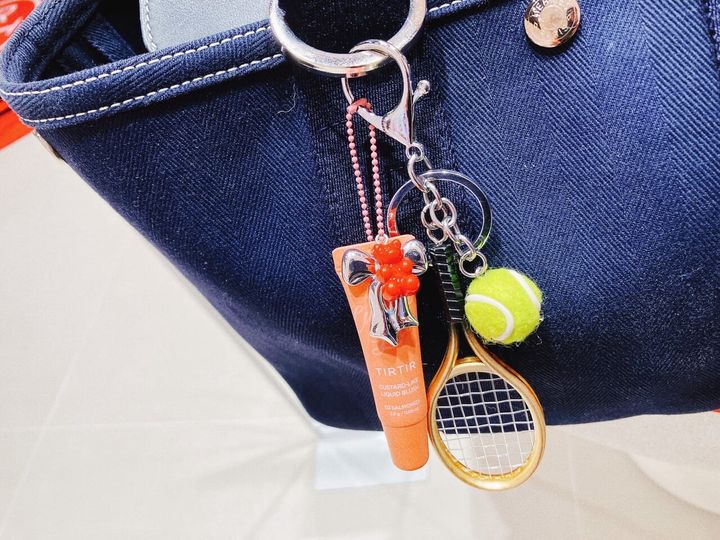 キャンバス地のバッグはコロコロ必須ですね。東大門のnyunyuで購入したテニスチャームも添えて。