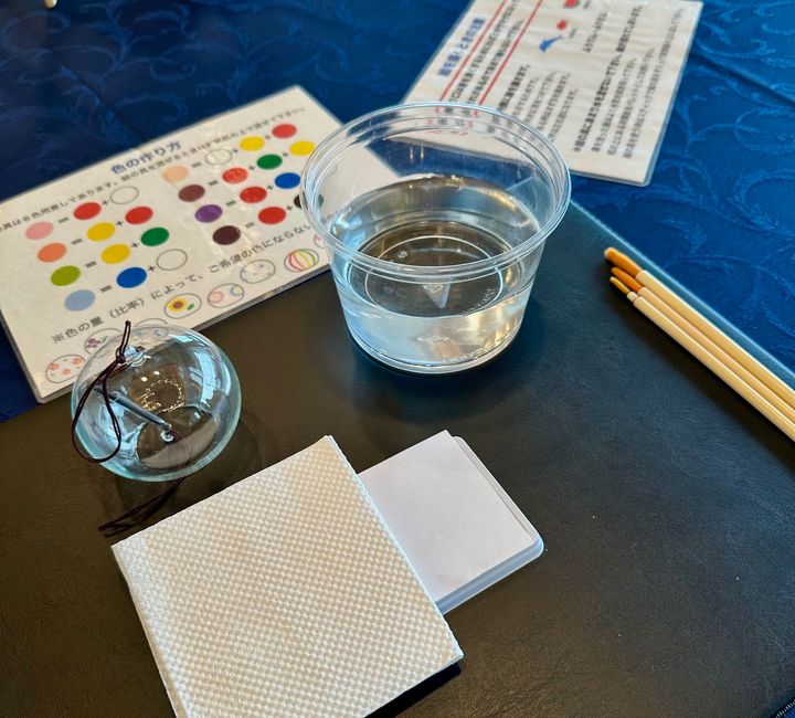 風鈴の内側に筆で丁寧に描いたら完成!柄の選定や描き方のコツは先生が教えてくれます。