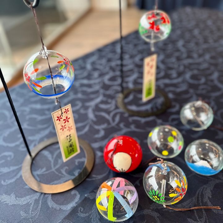 日本の夏の風物詩である風鈴に、自身の絵付けでオリジナル風鈴作りを楽しめます。体験後は、お家で江戸風鈴の涼やかな音色とともに粋なひとときを。8月11日(月・祝)は、江戸提灯の手描き体験もあります。