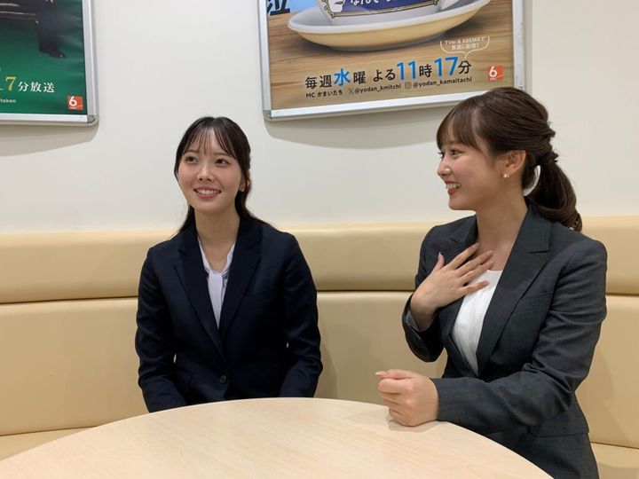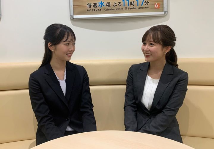 (左)久保光代アナウンサー、(右)新貝まゆアナウンサー