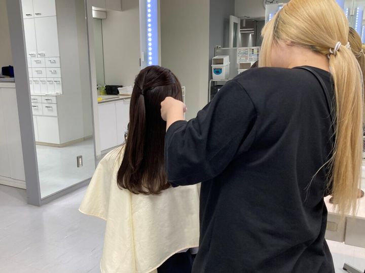 会見当日、この日は梅雨シーズンにもかかわらず快晴!午前10時には久保アナと新貝アナがヘアメイクを開始。普段とは違うプロの技に少しずつ表情が引き締まっていきます。記者受付が始まる午前10時30分には、多くの報道陣が!新人アナへの注目の高さがうかがえます。