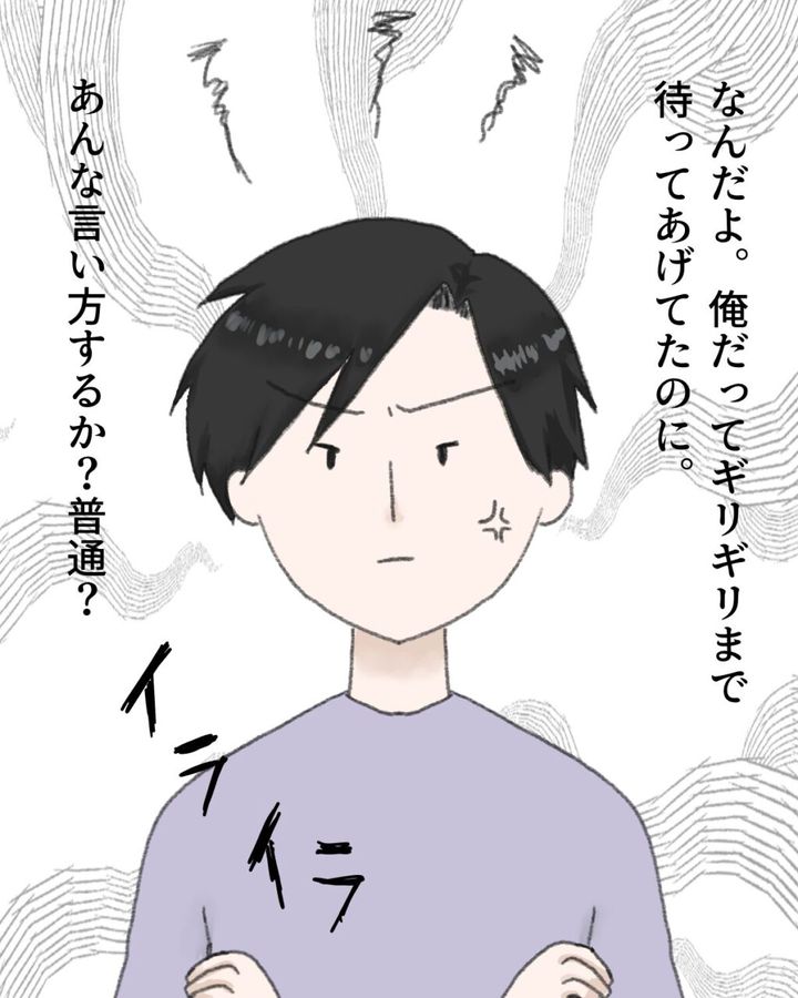 そう言った後、「なんだよ。俺だってギリギリまで待ってあげてたのに。あんな言い方するか?普通?」とイライラするカズヒデ。