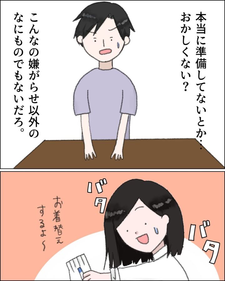 「本当に準備してないとかおかしくない?こんなの嫌がらせ以外のなにものでもないだろ」と憤るカズヒデ。私はといえば、リコの着替えで相変わらずバタバタしていました。