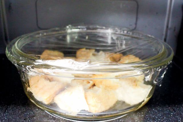 2. ふんわりとラップをかけ、電子レンジ(600W)で2分30秒加熱します。