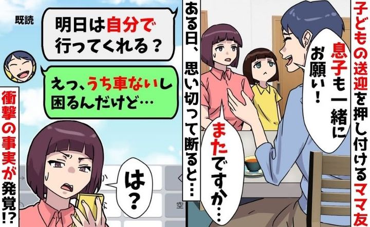 「今日もお願い♡」子どもの習い事の送迎を押しつけるママ友。息子くんがママの秘密を教えてくれた!?