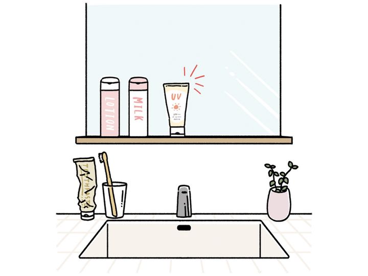 まずは、物理的に肌に浴びる紫外線量を減らすことが大切。朝起きたらスキンケアの1ステップとして、必ず日焼け止めを塗る習慣をつけましょう。紫外線は一年じゅう、曇りの日でも降り注いでいるので、天気に関係なく塗ることが大事。また、日常生活での紫外線をしっかり遮断するには、SPF値が30以上のものが安心です。