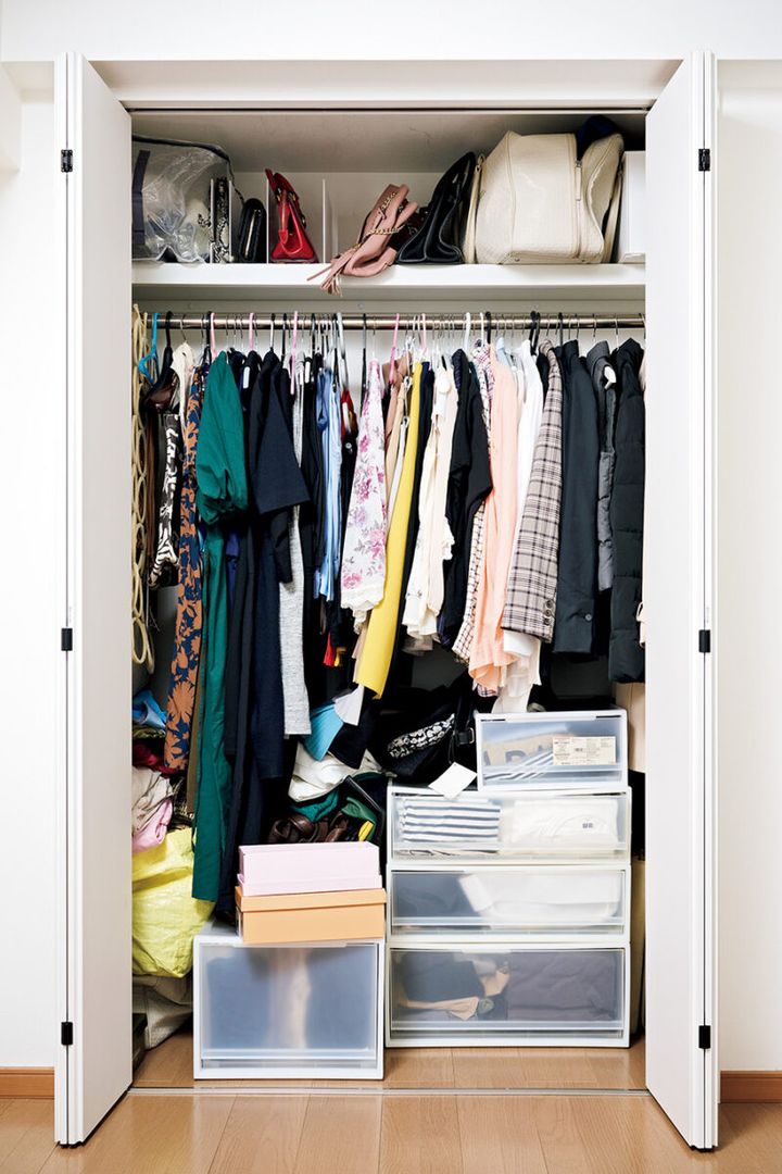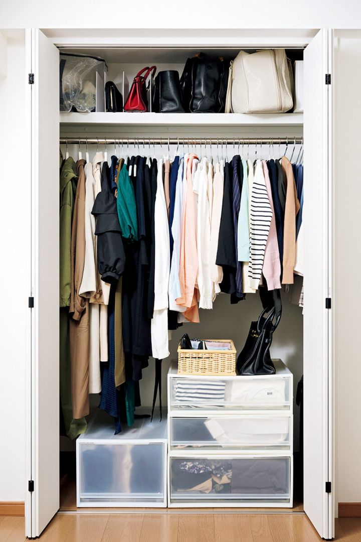 不要な服やバッグ、収納アイテムを思い切って手放し、ハンガーをそろえて整理すると、クローゼットが大変身!