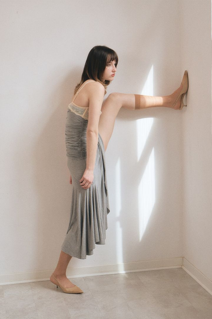 She explores the transitional space between girlhood and womanhood through styling and garment creation.
