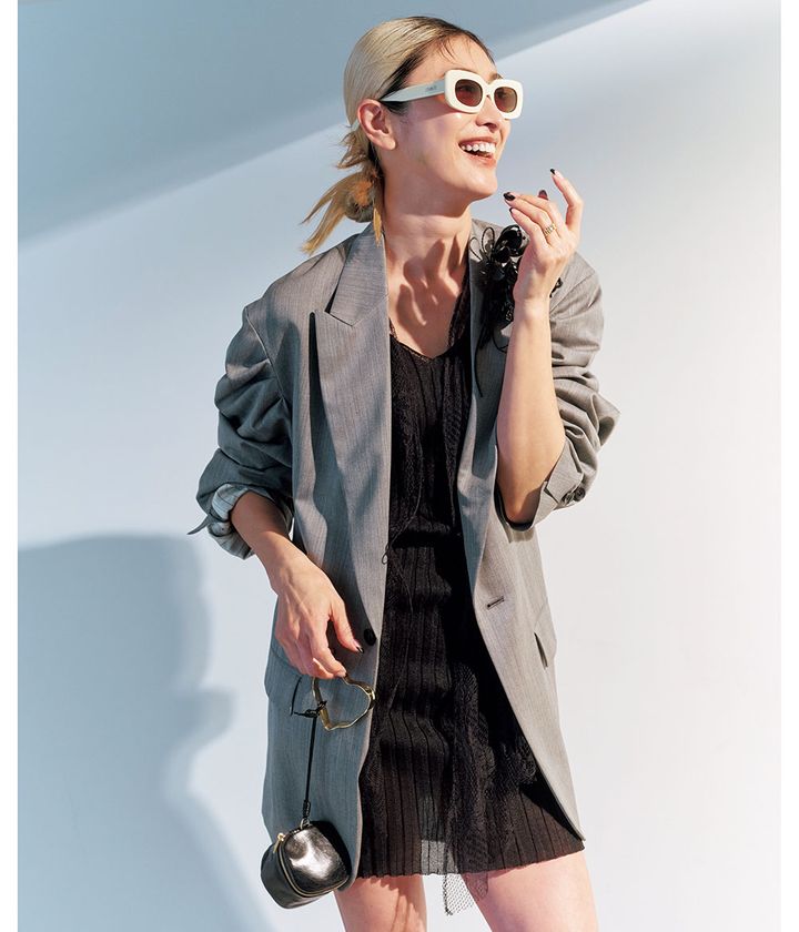 好きなのは、どこかひとクセある服や、スポーツテイストやマニッシュ感などをミックスしたファッション。昔から大きな変化はないはずです。逆にコンサバなオシャレはこれまでしてこなかった。子どもの学校は、自由な校風なので、ママとしてのファッションも自由。ネイビーを着る自分なんて想像できないからちょうどよかった(笑)。40代だってミニをはき続けるし、これからも好きな髪色を楽しむつもりです。最近、意識しているのが清潔感。シワシワの服でもサマになった若いころのようにはやっぱりいかないんですよね。パリッとアイロンをかけた服に袖を通したいし、仕立てのいい服が着たい。靴もちゃんと磨いてから履きたいな、って。大人になったからこそ、清潔感を大事にしたいです。