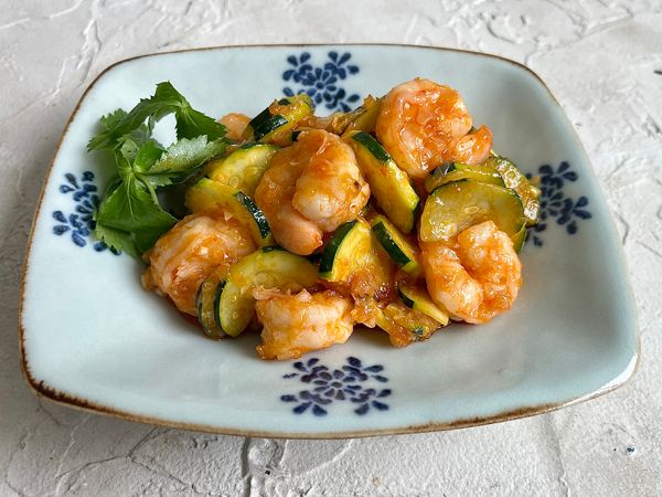 3. 【夏に食べたい】ズッキーニとエビのチリソース