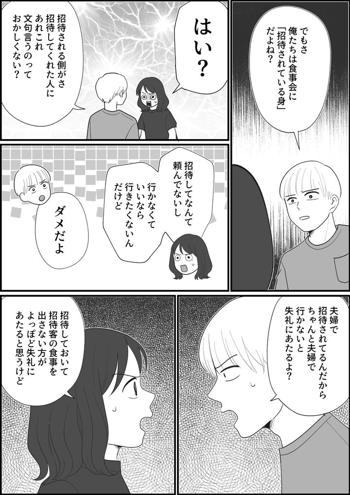 夫は私の言葉に、少し考えてから、不思議なことを言い始めたのです。「招待される側が、招待してくれた人にあれこれ文句言うのはおかしい」「夫婦で招待されているのであれば、夫婦で参加しないと失礼」……というのが夫の考えだそうです。