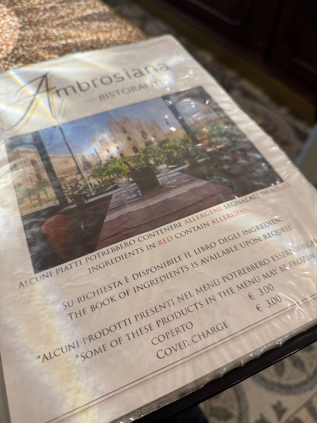 この写真の一番下に記載があるのが、コペルト(Coperto)