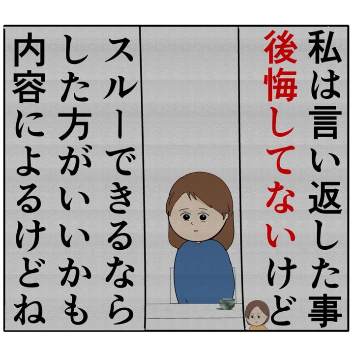 「私は言い返したこと、後悔してないけど」とも言っていました。しかし、さくらさんには「スルーできるならした方がいいかも。内容によるけどね」とアドバイスもしてくれていました。