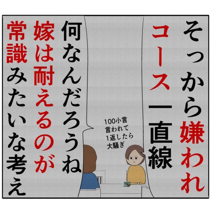 「そっから嫌われコース一直線。何なんだろうね。嫁は耐えるのが常識みたいな考え」と、一度義母に反論しただけで徹底的に嫌われるようになったと話していたウメさん。