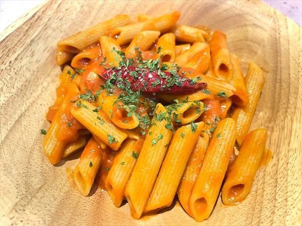 筆者の子ども達が必ずメインで注文するのが『ペンネアラビアータ』(430円)。辛そうに見えますが、辛さはかなりマイルドな印象です。辛い食べ物が苦手な筆者の子どもが、小学生の頃から食べています。残ったソースはフォッカチオにつけて食べてもおいしいですよ。