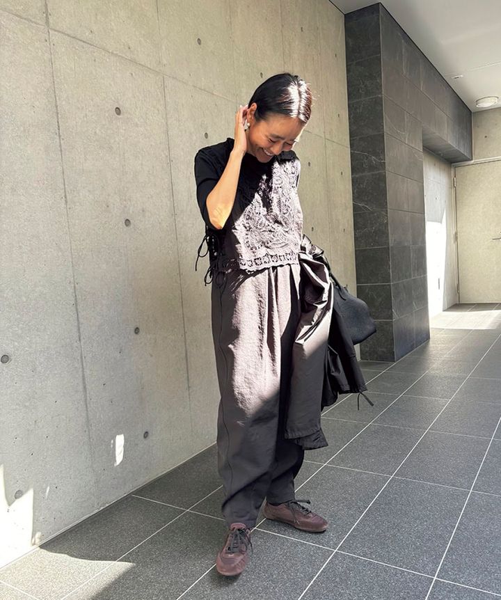 「自分好みで、今っぽさもある、そんな完璧なスニーカーに出会ってしまったら安定の2色買い(笑)。ナイロンとスエードのコンビネーションもおしゃれ。黒がベースの着こなしにニュアンスを出す、さり気ない差し色になる2足です」