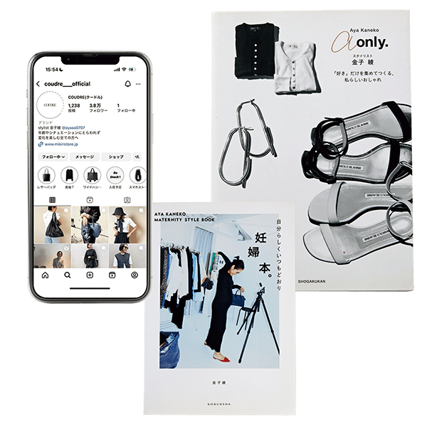 1979年生まれ、45歳。「流行っているから買う、は私の中にはない」と2018年に上梓した3冊目の著書『a only.』(小学館刊)で断言しているとおり、自分に似合っていて“らしく”いられる服を選び取り、着こなすセンスが抜群の金子綾さん。代名詞でもある黒をベースにしたシンプルで女らしさの光る着こなしは、キレのよさだけでなく、チャーミングな可愛げも潜んでいて、思わず真似したくなるR40女子が続出。毎日OOTDをアップしているインスタグラム(@ayakaneko)のフォロワー数は22.3万人に及び、YouTubeチャンネルでもリアルな購入品紹介動画が高い人気を誇る。ディレクションするブランドCOUDRE(クードル)はもちろん、数々のブランドとのコラボも注目度が高く、“金子売れ(金子さんが着ると売れる)”という言葉が生まれるほど、その影響力は大きい!