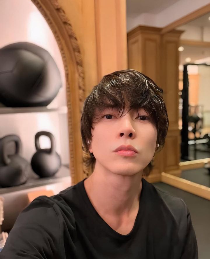 「パリのジムに行った時の写真です。僕自身おでこを出すスタイルが多かったのですが、気分転換で。あと、ほぼほぼシャワー上がりでジムに行きました。普通逆だと思うのですが、どうやら、水風呂というか水のシャワーをガーって浴びてから、トレーニングをした方が良いという情報をトレーナーにいただきまして。それから朝サウナへ行って水風呂でキンキンに冷やしてから、トレーニングがルーティンになっています。なので、髪がこういう風に仕上がっています」