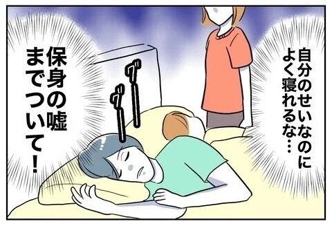 ・自分のせいで娘が死にかけてるのに、病院にも連れてかないどころか、悪びれもせずにグースカ寝てんのか。やっぱ、浮気をするような人間って救いようがないのね。