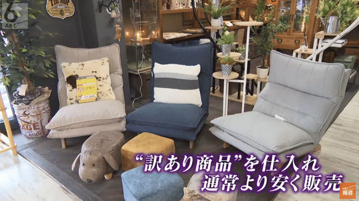 また、インテリア業界にも注目のオフプライスストアが。全国に54店舗を展開する家具・インテリアの店「ビッグウッド」。兵庫・姫路店には、新品のダイニングセットやソファなどが半額を下回る驚きのロープライスで並ぶ。