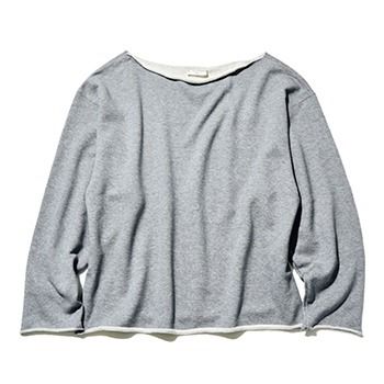 スウェット/オニット(ヤギ) 「片方または両肩を下げオフショルにしたり、タンクをのぞかせたり、アレンジを楽しめます」(船戸さん) 「メンズトップスから着想を得たサイジング。コットン素材を切りっぱなし風に仕上げたルーズな雰囲気と、デコルテが見えるすっきりとしたネックが好バランス」(onit・プレス担当)