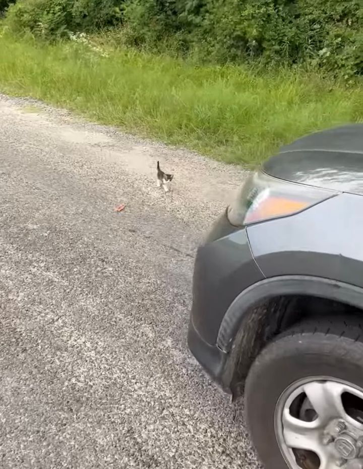 助けを求めるかのように車の前に姿をあらわした一匹の子猫。 車を停めてこの子猫を抱き上げた男性は、その直後に信じられない光景を目にしました!!