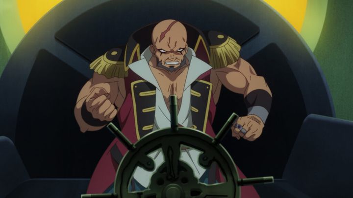 リアムは第11話で、勝率わずか3.8%だったはずのゴアズ海賊団を追い詰めた。最前線で敵艦をバッタバッタと倒すリアムに対して、血も涙もない卑劣な団長ゴアズは、味方を盾にして逃走を図るも、逃げ場を失っていくばかり……。やがてゴアズは、案内人の力で化け物となり、リアムの部下たちをなぎ倒していった。