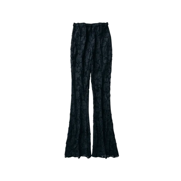 3. タイトなフレアーで女性らしさをプラス!抜け感のある「黒レースパンツ」の着回し術♡