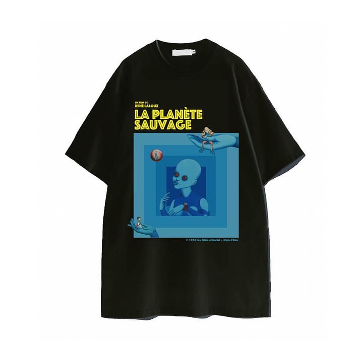 「Fantastic Planet」に登場するドラーグ族のティバを中心に、3作品に登場するキャラクターとモチーフをカオティックにコラージュした。