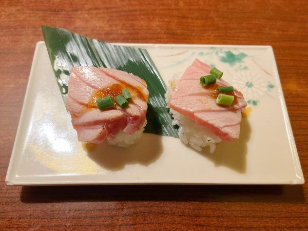 そして、〆は、A5和牛肉寿司&炙りマグロ中トロ寿司です。これこれ!これが食べたかったのです。