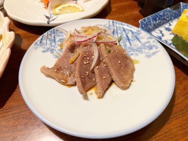 牛タンは2種類の調理方法で。まずは、自家製冷製牛タンでおつまみ風にさっぱりと。