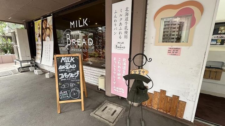 「MILK IN BREAD」と大きく書かれたガラスの文字…!
