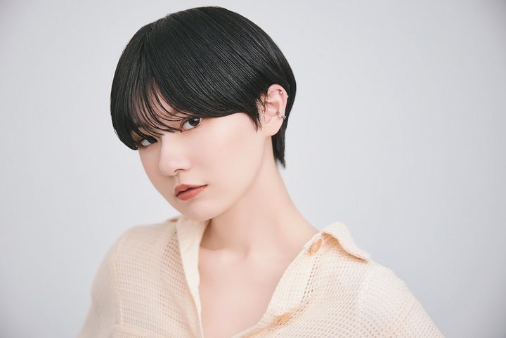 前髪から覗く瞳に射抜かれそうな目力ショート。バックは頭の形がキレイに見えるようにくびれをつけ、もみあげや襟足は短めにして柔らかさとシャープさを両立。性別を感じさせない透明感のある寒色ブラックでクール感をアシスト。重めのオイルでツヤ感を出し、シンプルだけど洗練された雰囲気に。