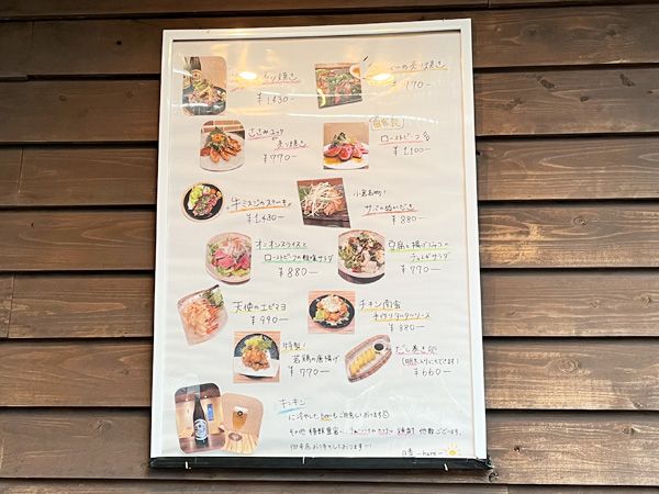 お店の外壁にも写真付きのメニューがありました