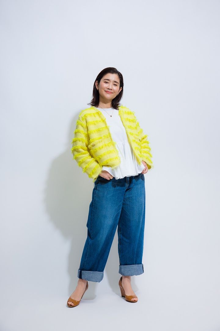 ハッピー感◎ 石田ひかりさん(53) が纏う、ポジティブイエローが華やかなデニムスタイル【特別カット集】